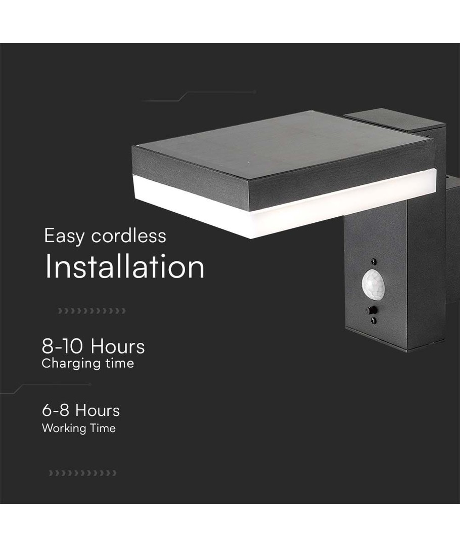 Den fyrkantiga designen av denna vägglampa ger ett modernt och stilrent utseende som smälter väl in i alla utomhusmiljöer. Den integrerade ljuskällan garanterar enkel installation och långvarig användning. Tack vare solenergidriften och den automatiska PIR-sensorn är denna lampa både miljövänlig och ekonomisk.