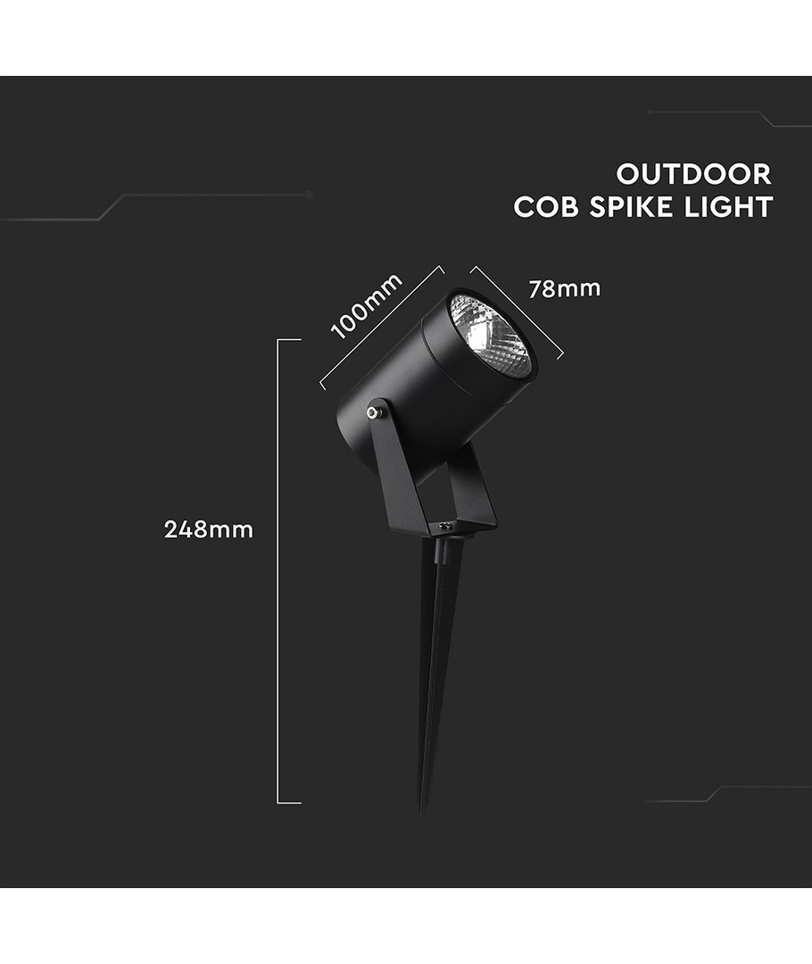 Denna spjutlampa erbjuder en elegant och funktionell lösning för utomhusbelysning. Med sitt robusta svarta aluminiumhus och en kompakt design på 248 x 78 x 100 mm, passar den perfekt i alla miljöer.