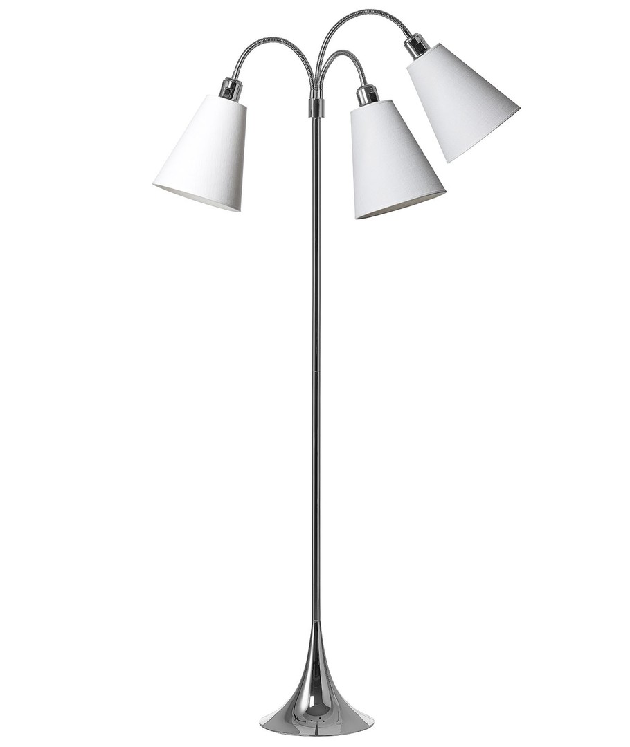 Den klassiska, funktionella golvlampan i elegant design, med 3 skärmar i vit färg.