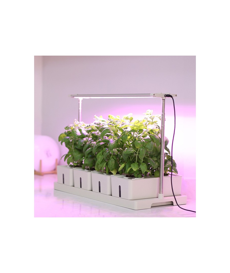 De fyra individuella brickorna gör det enkelt att ge växterna olika gödningsmedel, eller mer eller mindre utrymme mellan de enskilda plantorna. Varje bricka rymmer 2 liter vatten, så det är inte nödvändigt att vattna varje dag. Detta ger mindre underhåll och gör det ännu enklare att njuta av färska hemodlade grönsaker.