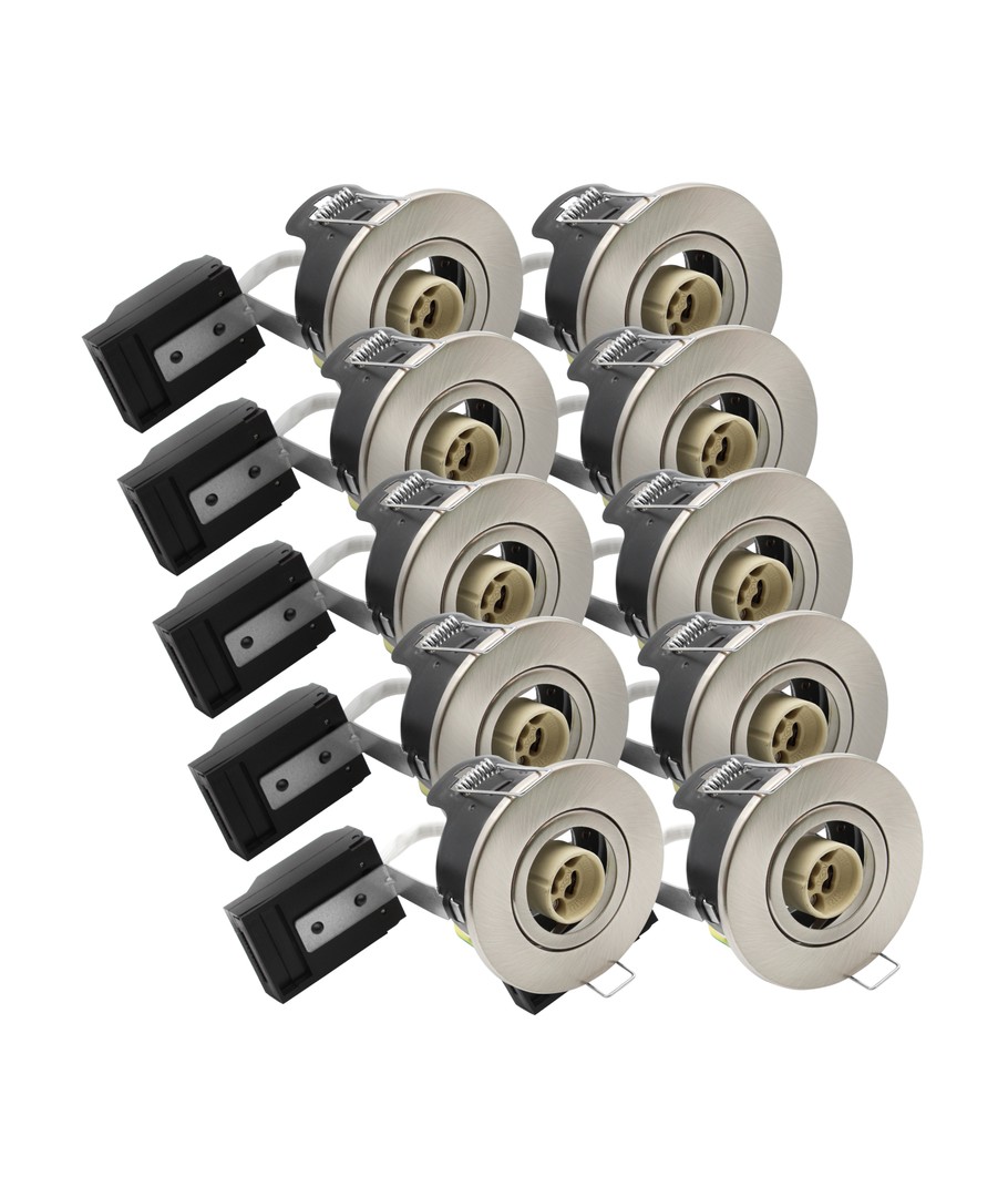 Set med 10 st. V-Tac infällda spotlights i satin nickel med GU10 sockel.