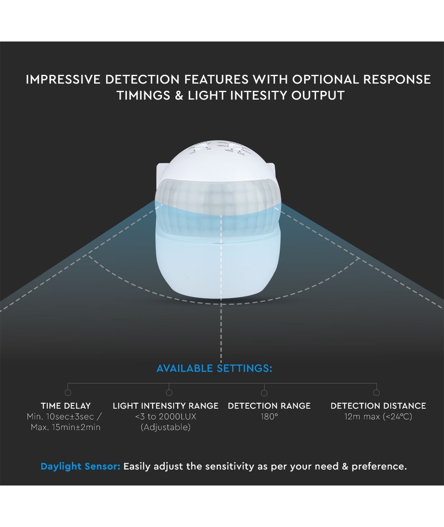 Upptäck den mångsidiga V-Tac rörelsesdetektor med rörligt huvud, idealisk för LED-belysning utomhus och designad för att ge pålitlig detektion och säkerhet.