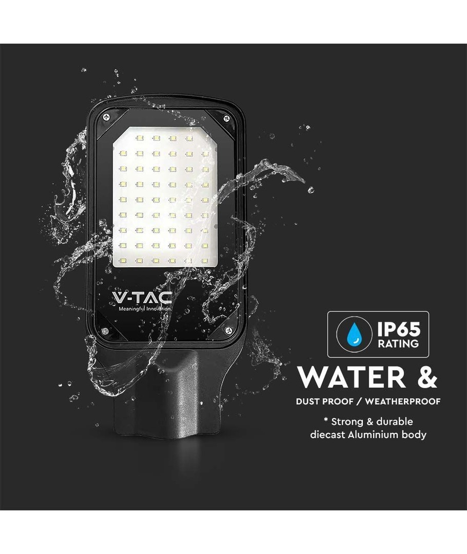 Denna LED gatuarmatur är designad för att leverera optimal belysning för utomhusmiljöer. Med sin 30W effekt erbjuder den en imponerande ljusstyrka på 2510 lumen, vilket säkerställer en tydlig och jämn belysning. Den breda spridningsvinkeln på 110 grader gör det möjligt för ljuset att fördelas jämt över stora ytor.