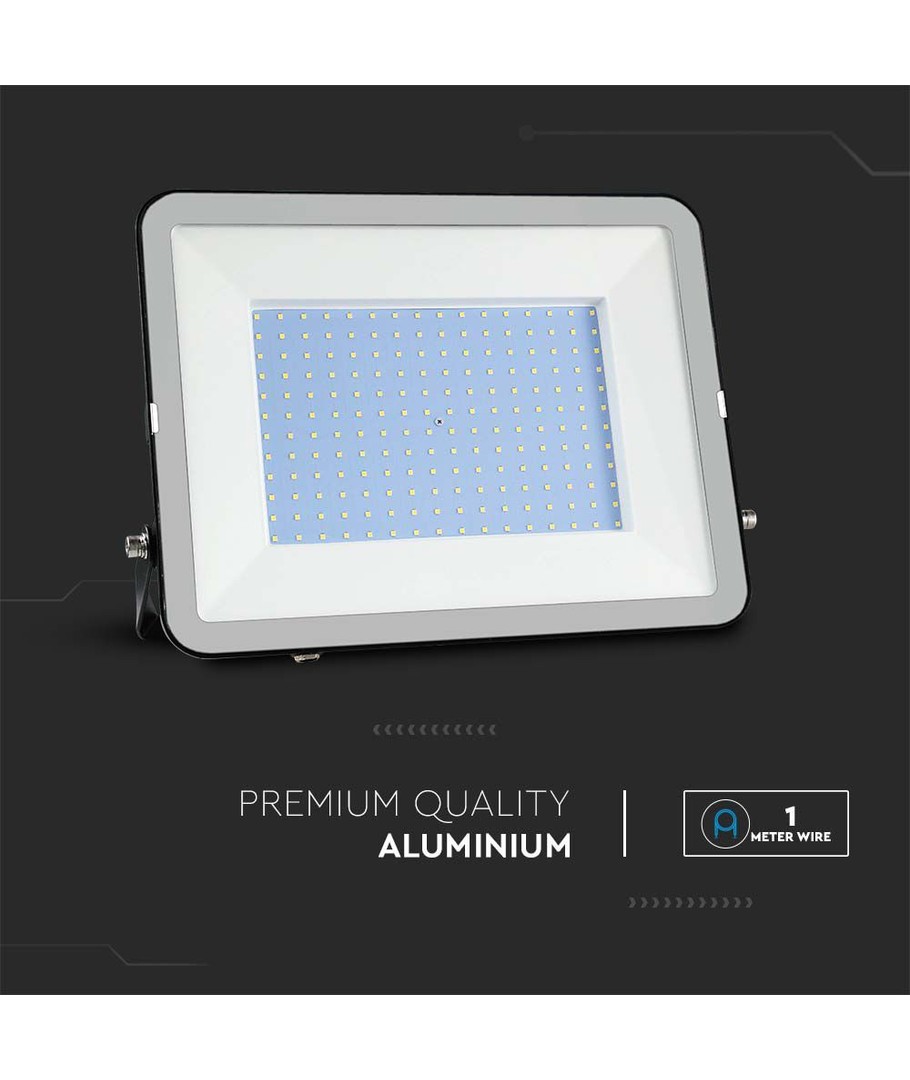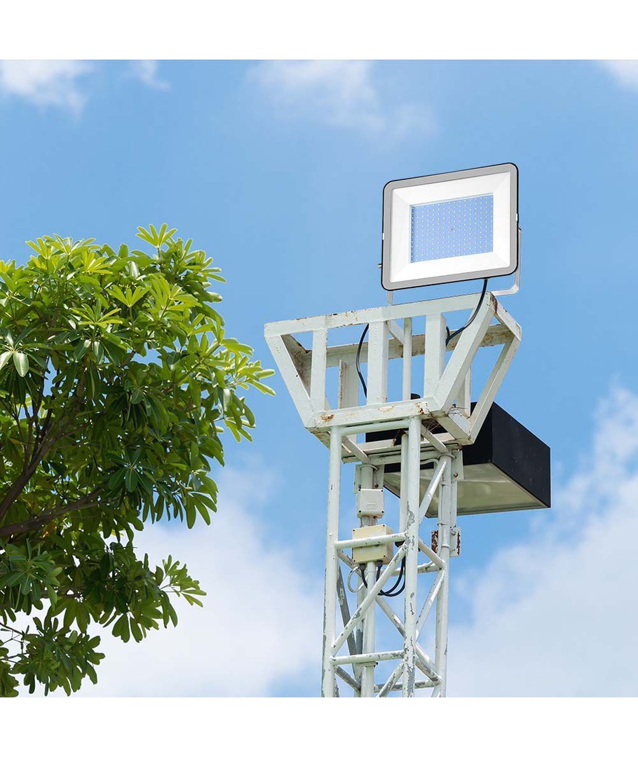 V-Tac 300W LED strålkastare är perfekt för att upplysa områden som kräver hög ljusstyrka och ett naturligt ljus utan blå eller gula toner.
