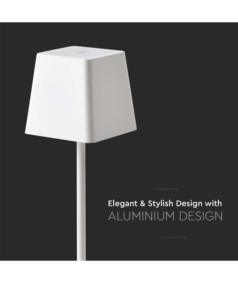 Denna mångsidiga och uppladdningsbara LED bordslampa erbjuder flexibilitet för både inomhus- och utomhusmiljöer. Lampan har en stilren vit design och är en perfekt följeslagare i alla rum eller utomhusområden som kräver extra belysning.