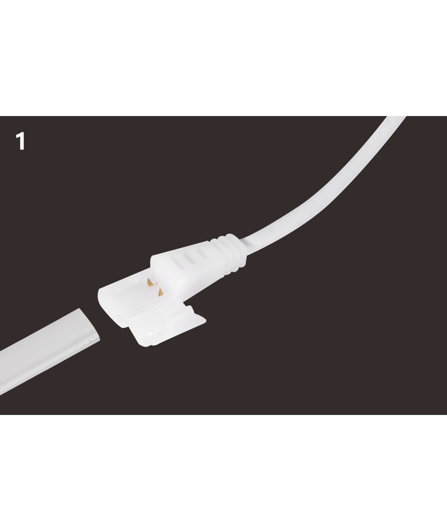 Denna vattentäta slim COB LED strip på 230V levererar ett kraftfullt, enhetligt ljus helt utan synliga dioder. Det innebär att du får ett elegant ljusband utan avbrott i ljuset – och eftersom strippen drivs direkt på 230V behövs ingen transformator. Monteringen är enkel med den förmonterade tejpen på baksidan, och du kan beställa den i upp till 50 meter i ett stycke.