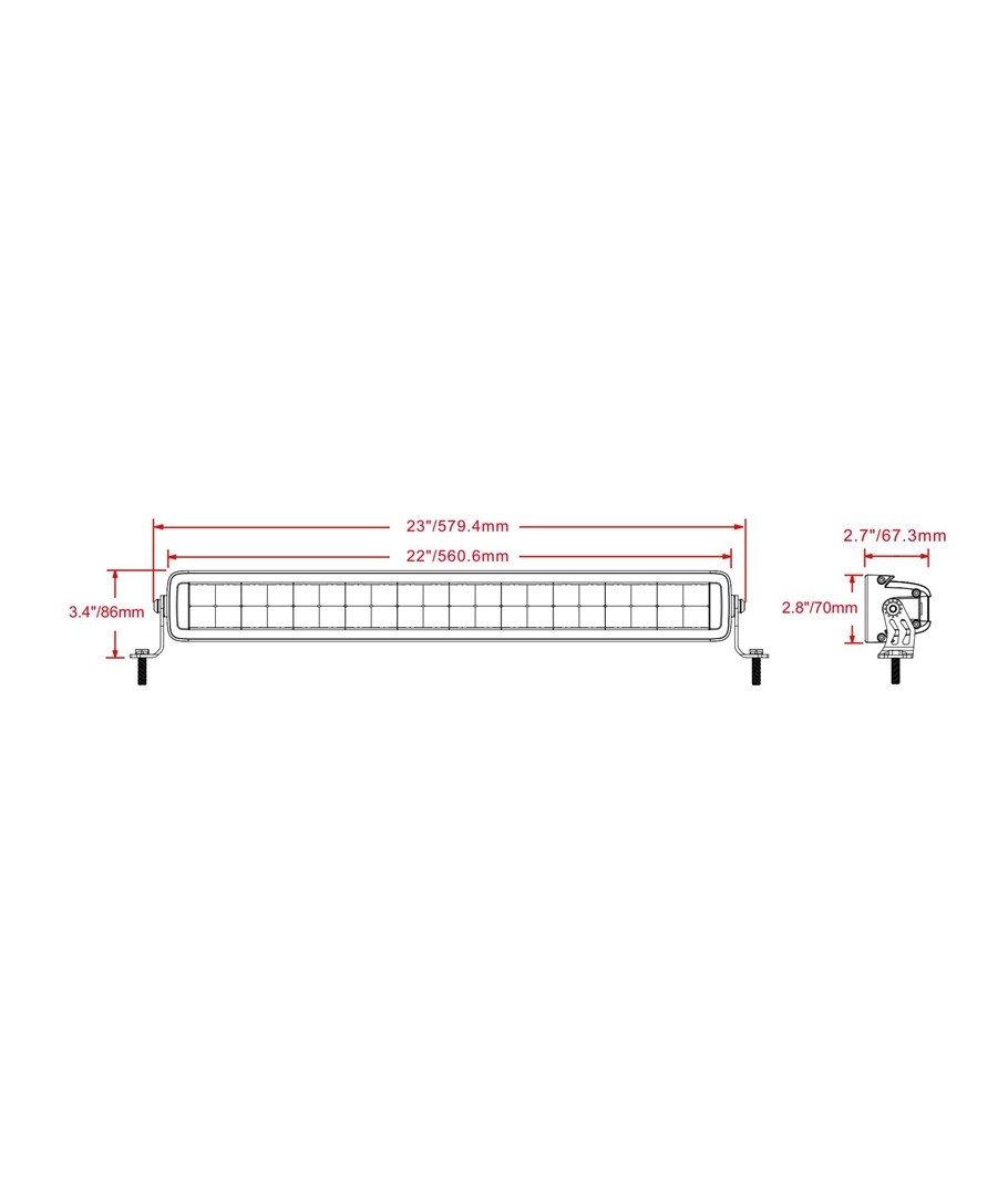 Med en robust design och dimensioner på 560 x 70 x 67 mm är denna LED-ljusramp både kompakt och lätt att installera. Den är konstruerad för att stå emot krävande miljöer och ger ett pålitligt ljus, oavsett om det används på bygget, i skogen eller som tilläggsbelysning på fordon.
