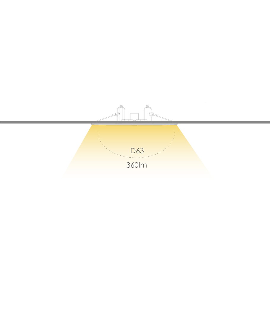 Denna effektiva nödbelysning är utformad för att installeras i taket och säkerställer att du alltid har ljus även när strömmen går. Med en ljusstyrka på 360 lumen sprider den ljuset brett över 140 grader, vilket garanterar en jämn och riklig ljusfördelning i rummet.