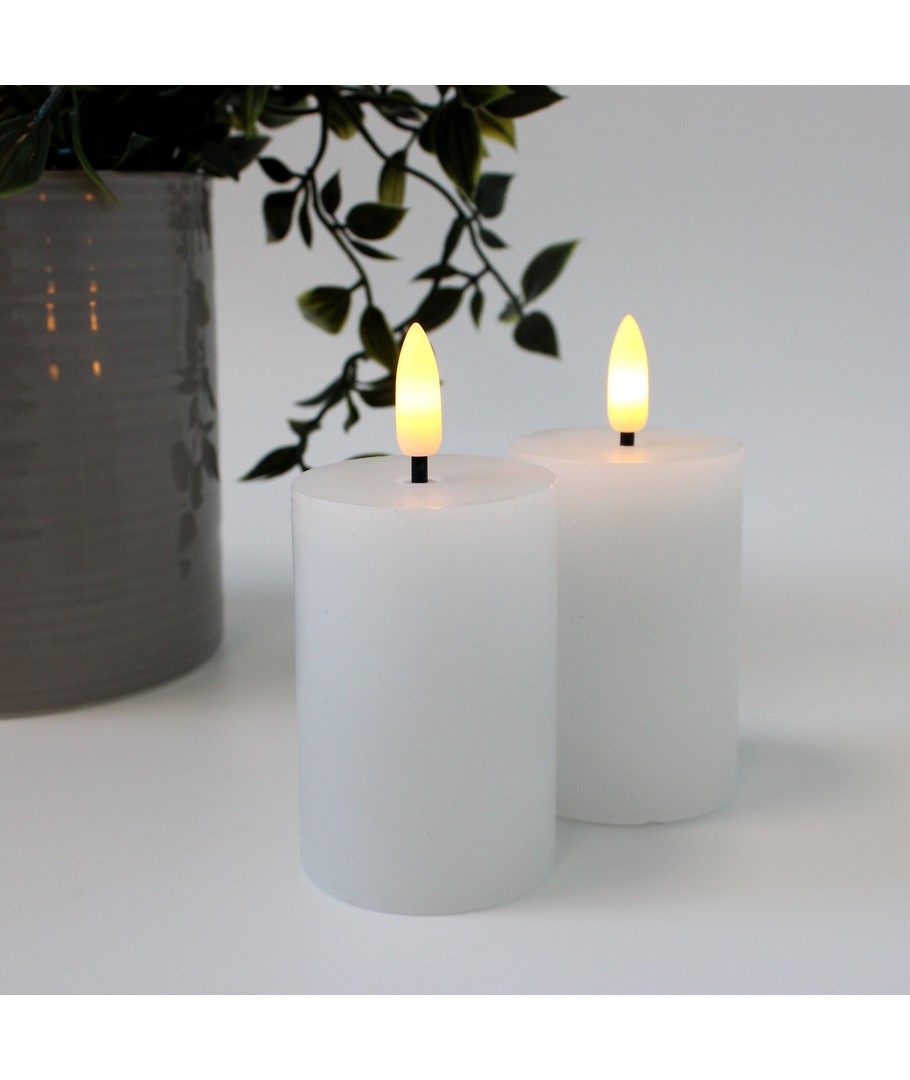 Upplev den mjuka och lugnande belysningen från våra LED Blockljus, som skapar en autentisk flameffekt utan risk för öppen eld. Detta set med två vita ljus är perfekt för att skapa en mysig atmosfär i ditt hem.