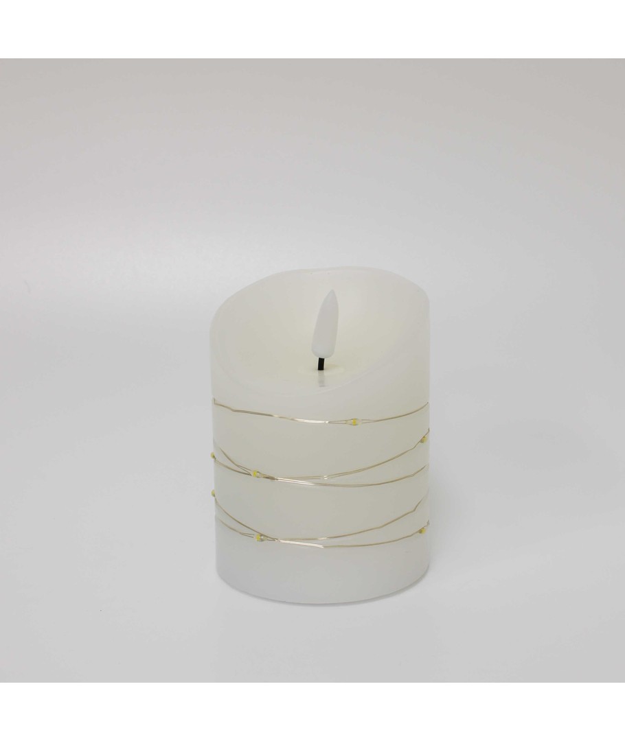 LED Blockljus med ljusslinga, 10cm, lågeffekt - Ø7,5cm, fjärrkontroll, äkta vax Expandera