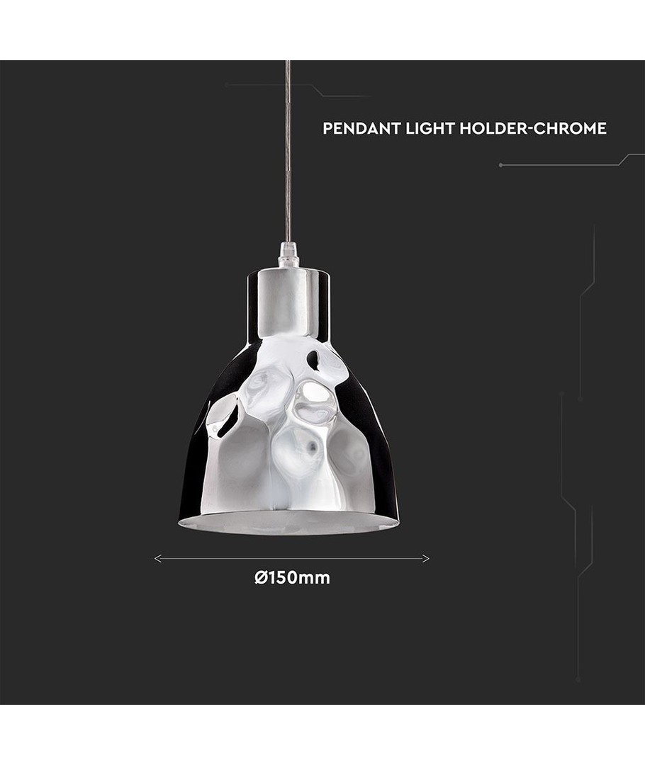 Vår koppar pendellampa i krom erbjuder en perfekt kombination av stil och funktion. Dess kompakta storlek på Ø15 cm och förmågan att hantera upp till 60W ljuskällor gör den till en mångsidig lösning för olika belysningsbehov. Den enkla installationen, tillsammans med dess eleganta design, gör den till ett utmärkt val för den modemedvetna konsumenten. För dem som värdesätter både form och funktion, är denna lampa ett obestridligt tillskott till hemmet.