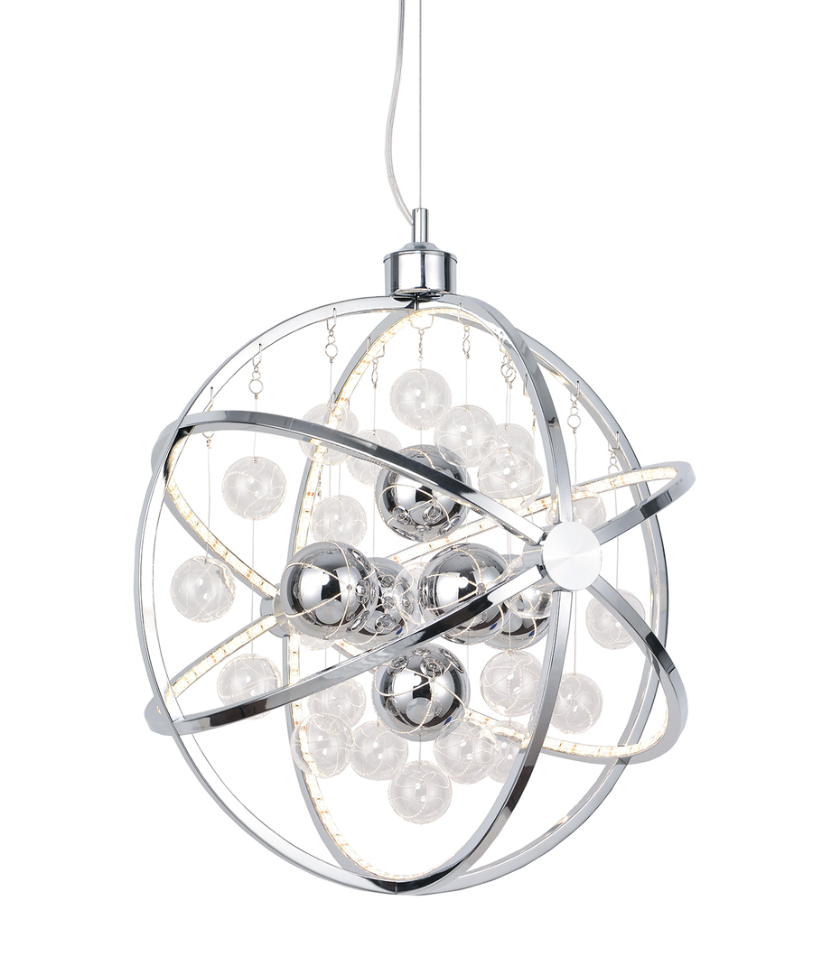 Galaxy Pendel i snygg kromfärg är utförd i metall och glas, en annorlunda fantastiskt snygg LED taklampa. Lampan har en futuristisk design och som namnet beskriver, ger den associationer till galaxen.