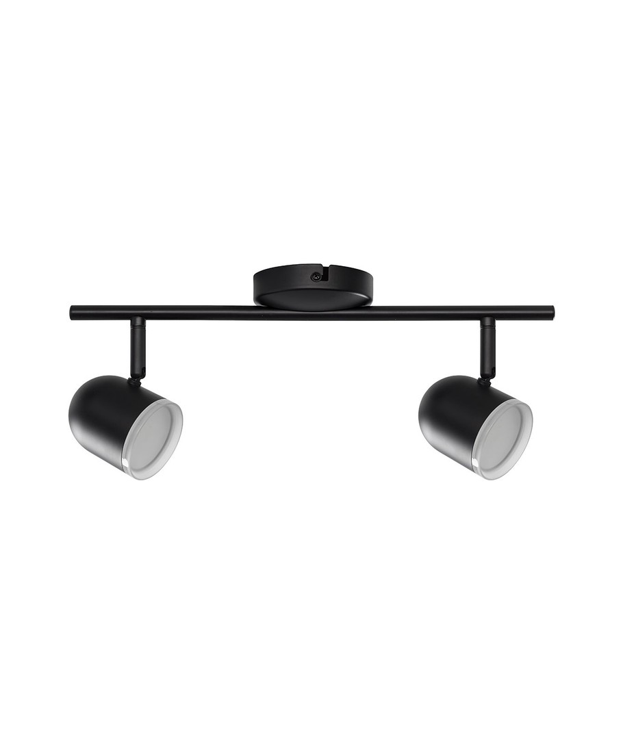 Teater är namnet på denna nya serie taklampor från Danska Nielsen Light - snygg 2-spot i en läcker matt svart färg, monterad på en skena.