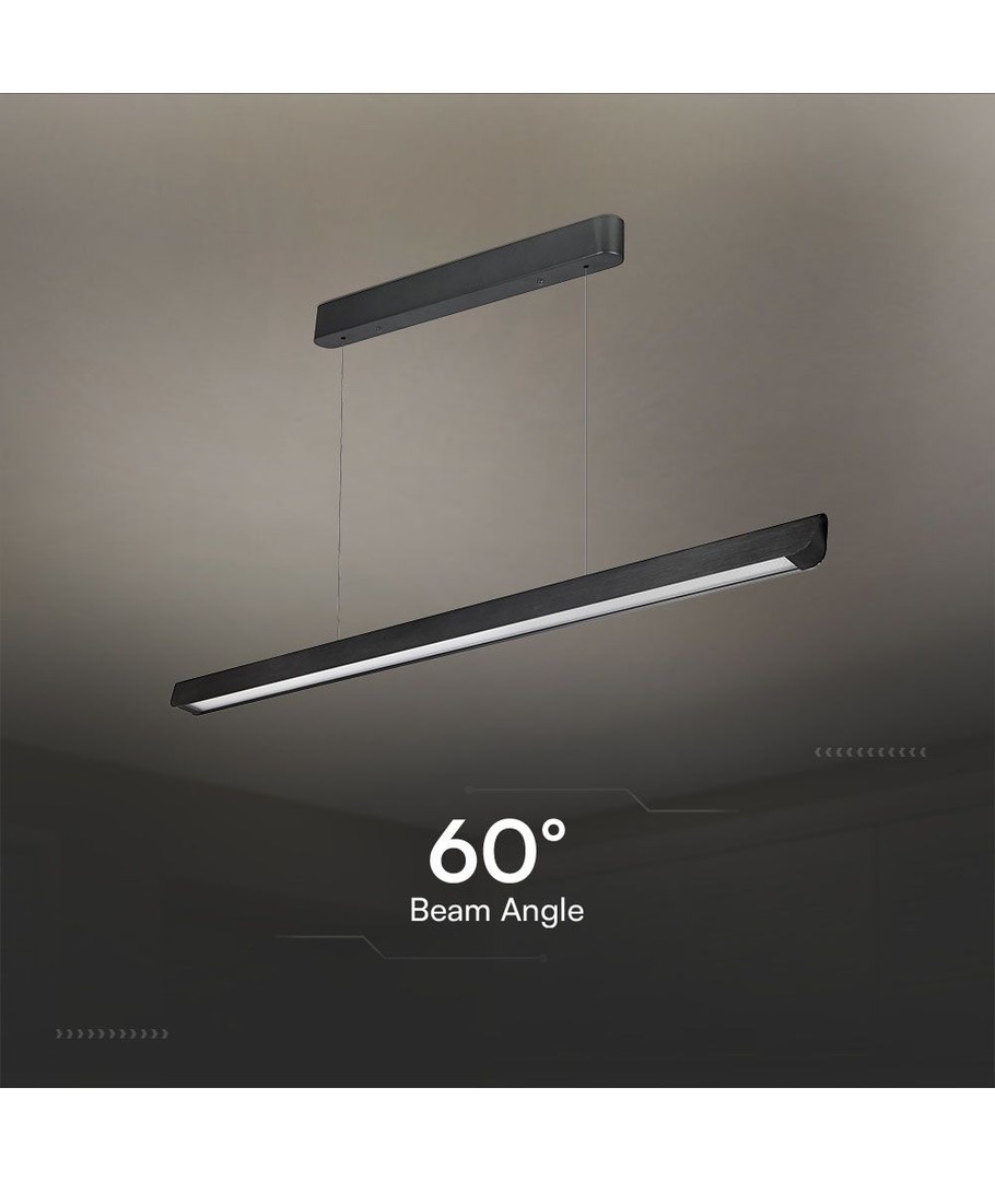 Denna moderna och stilrena LED-pendelarmatur är den perfekta lösningen för att skapa en elegant belysning i både offentliga och privata miljöer. Med sin linjära design och svarta finish smälter den enkelt in i de flesta inredningar.