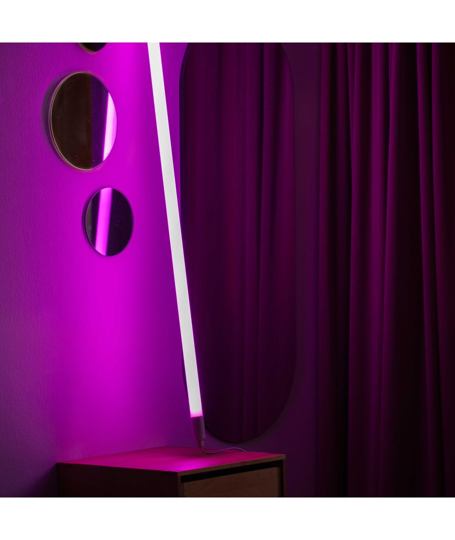 Denna eleganta 120 cm Neon Tube LED i rosa ger en sofistikerad touch till alla miljöer. Perfekt för dig som vill tillföra en unik atmosfär med en iögonfallande designerbelysning.
