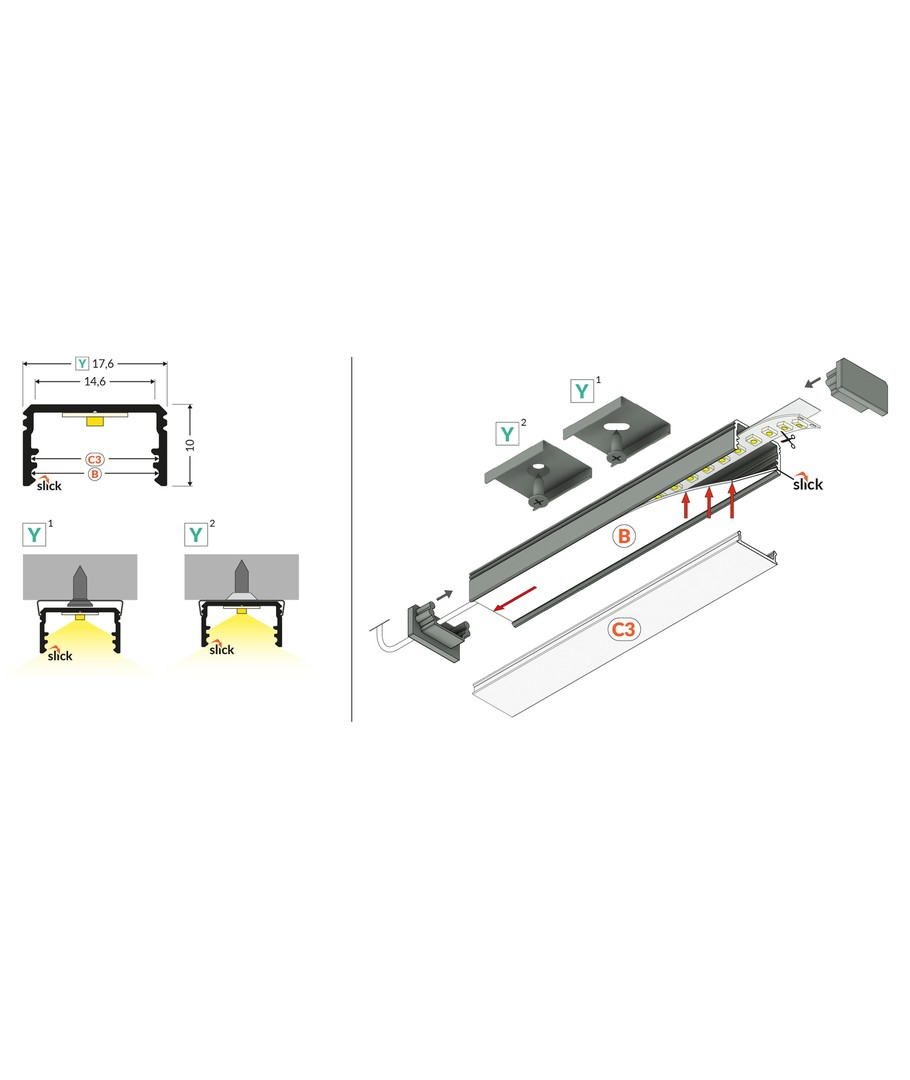 Obehandlad aluminium, utanpåliggande, LED-skena