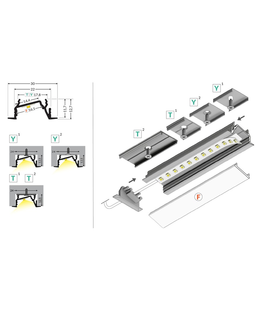 1m aluprofil DIAGONAL14 F/TY är en svart anodiserad, inbyggd LED-skena, designad för att ge en stilfull och funktionell ljusmiljö.