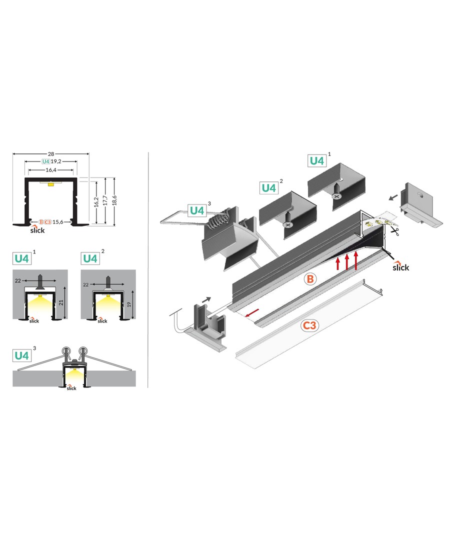 2m aluprofil SMART-IN16 BC3/U4 - Anodiserad är en mångsidig inbyggd LED-skena designad för att passa eleganta och funktionella belysningslösningar.