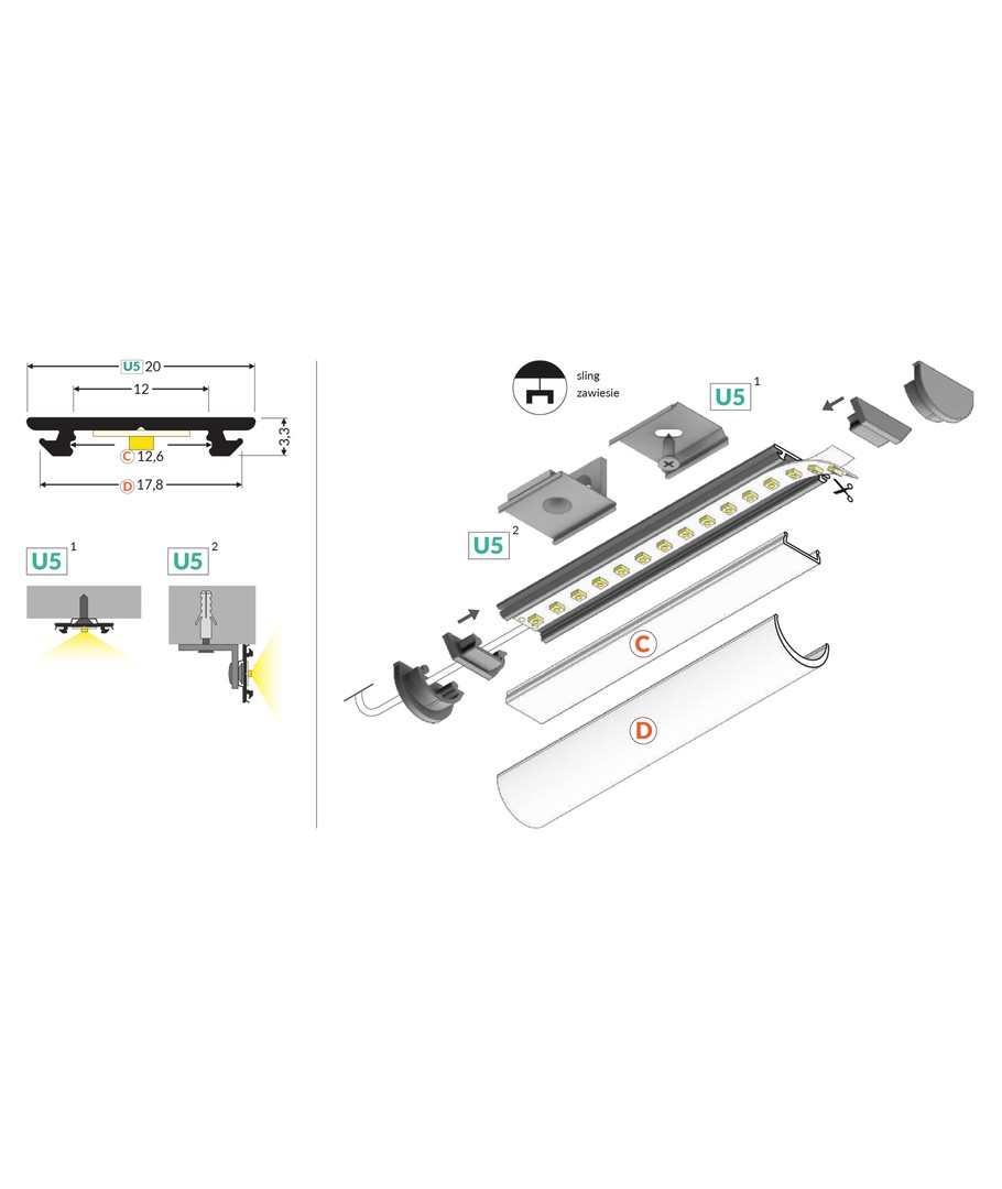 2m aluprofil ARC12 CD/U5