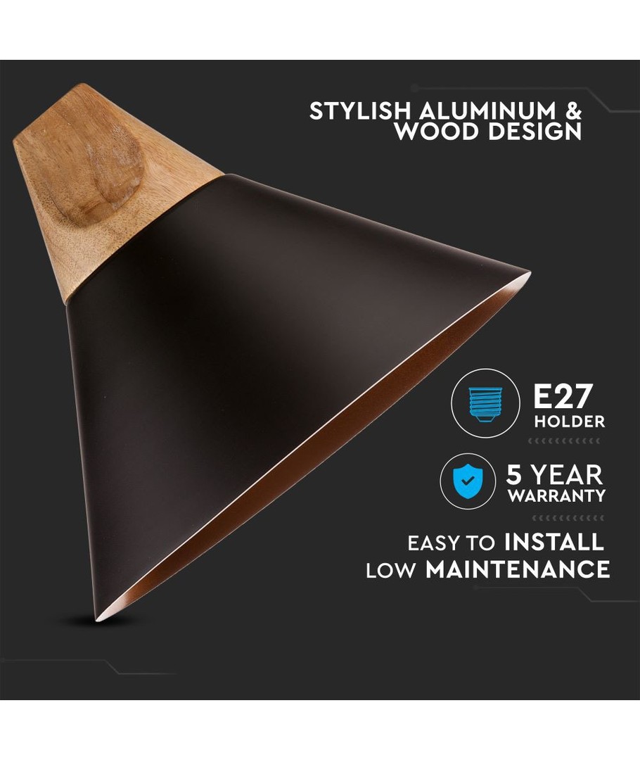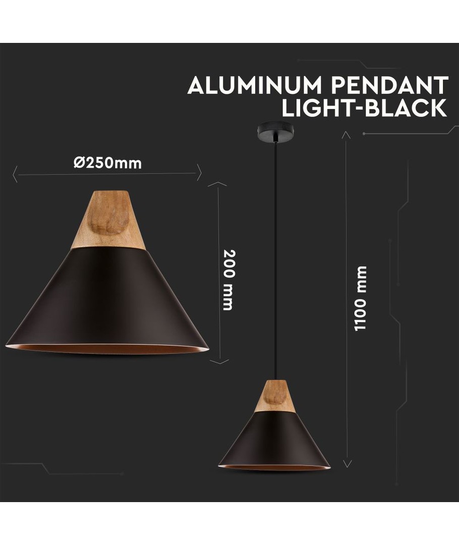 Ø26cm pendel i aluminium med trätopp - E27 sockel, max 60W, svart, utan ljuskälla V-TAC Expandera