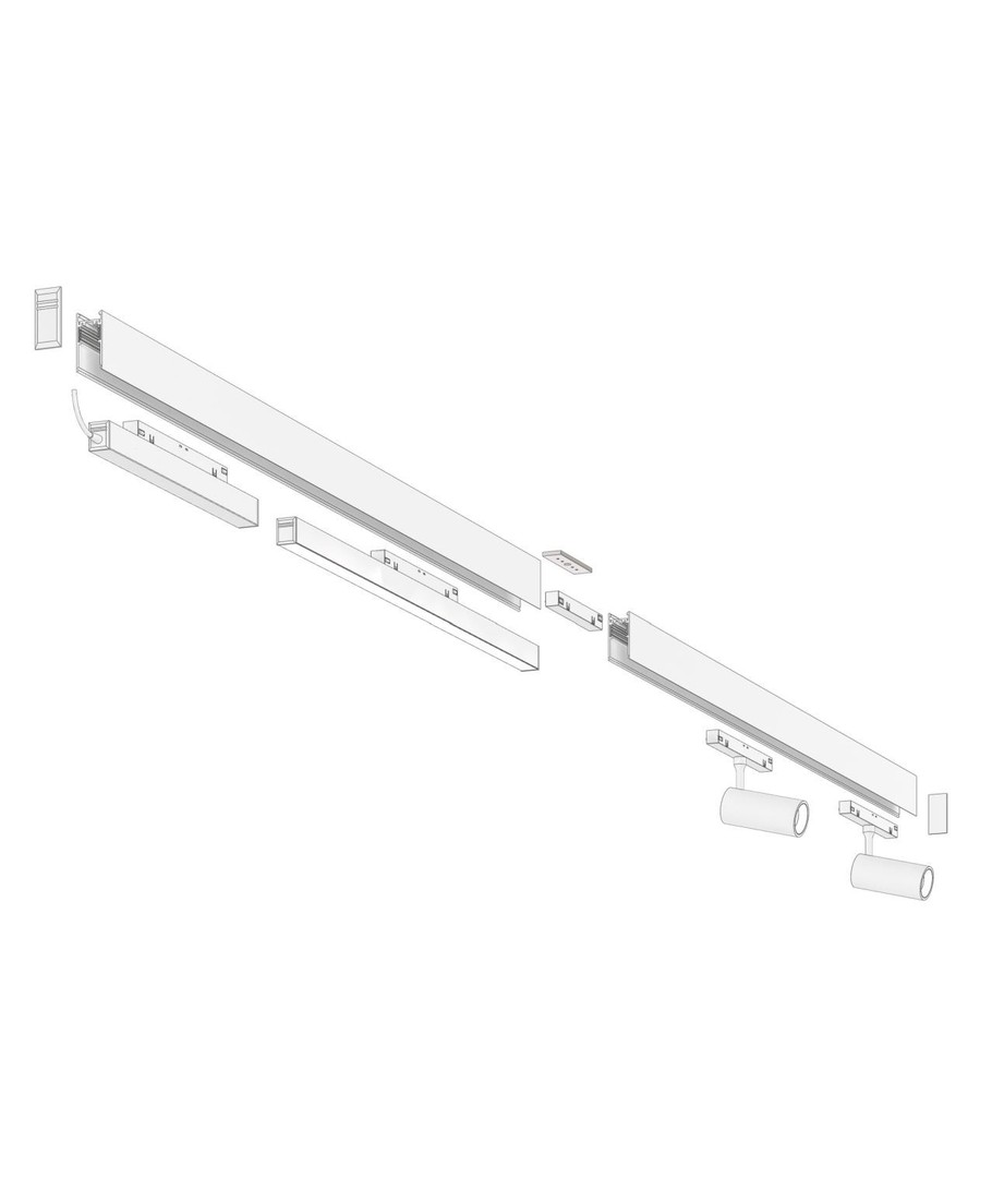 I detta SHIFT-set får du 2x 1 meters skenor, 2 LED-spottar och en ljusskena, samt allt du behöver för att installera setet.