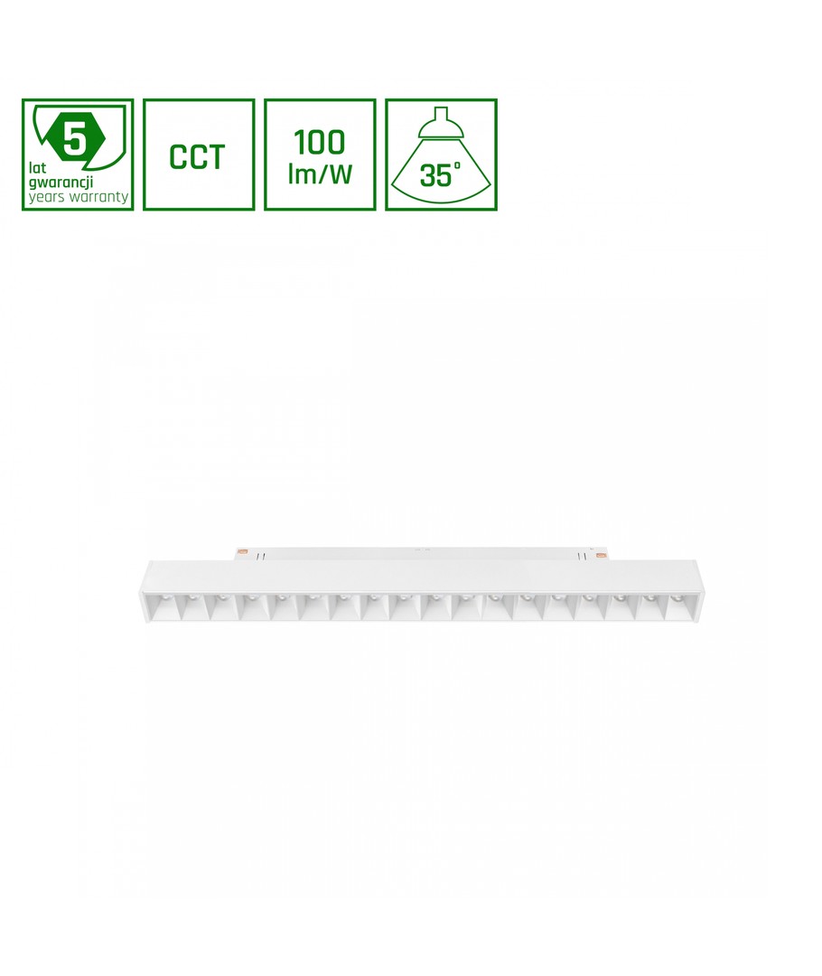 Utvecklad för en perfekt ljusupplevelse, erbjuder denna armatur en ljusstyrka på 1000 lumen vilket ger ett kontrollerat och fokuserat ljus på 35 grader. Den ger dig möjlighet till ett strålande ljus som stoltserar med ett RA-värde mellan 90-95, och därmed återger naturliga och livfulla färger.