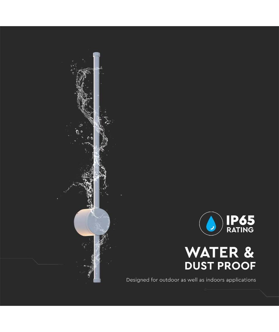 Med sitt IP65-klassade vita hölje, är lampan anpassad för att tåla vattenstänk och regn, vilket gör den perfekt för utomhusbruk.