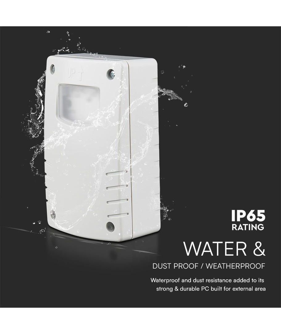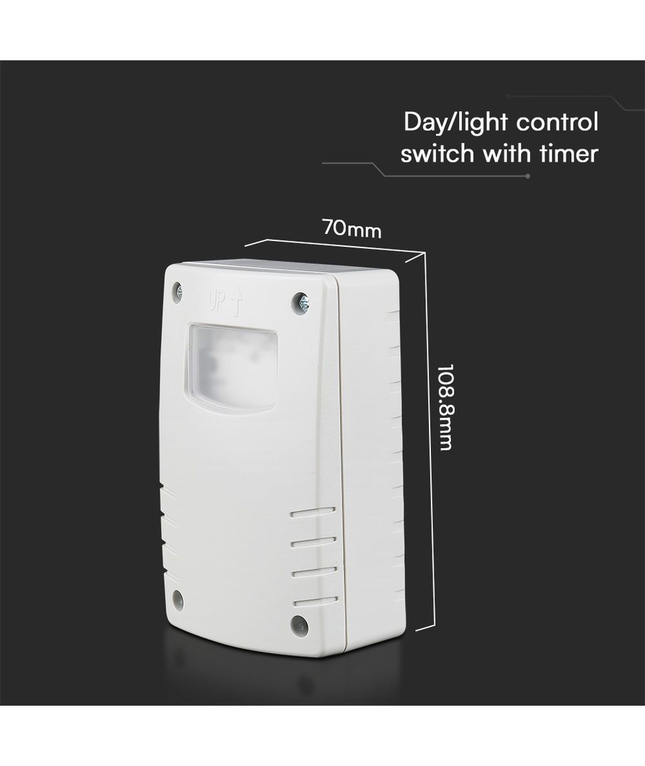 V-Tac skymningsrelä med timer är en mångsidig och effektiv lösning för dem som önskar automatisk belysningskontroll med möjlighet till personlig anpassning.