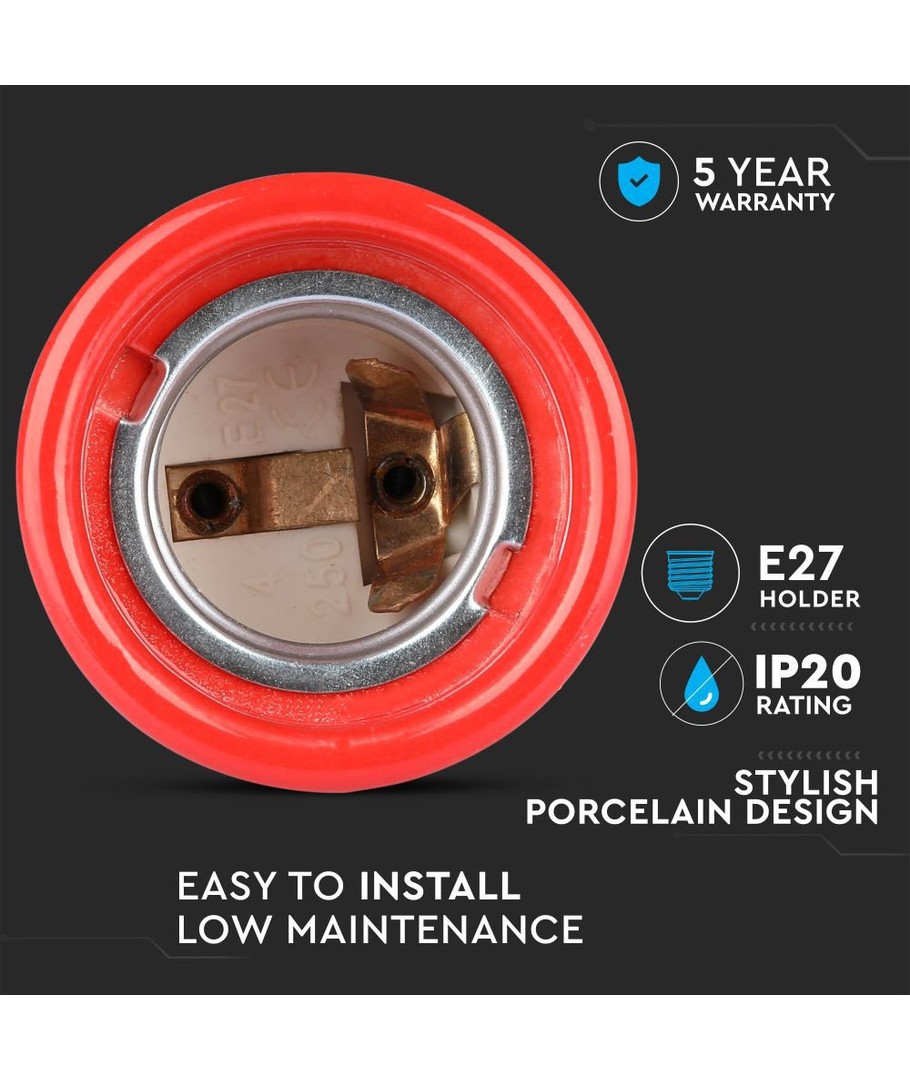 E27 porslinssockel, röd - Max 60W, Ø4,7cm, för upphängning V-TAC Expandera