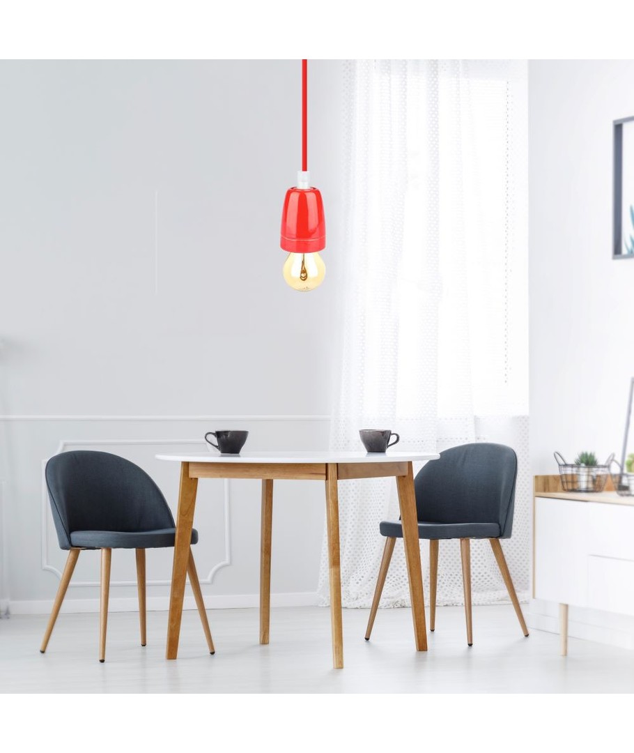 Högfrekvent porslinslampa med E27-sockel i en elegant röd färg.