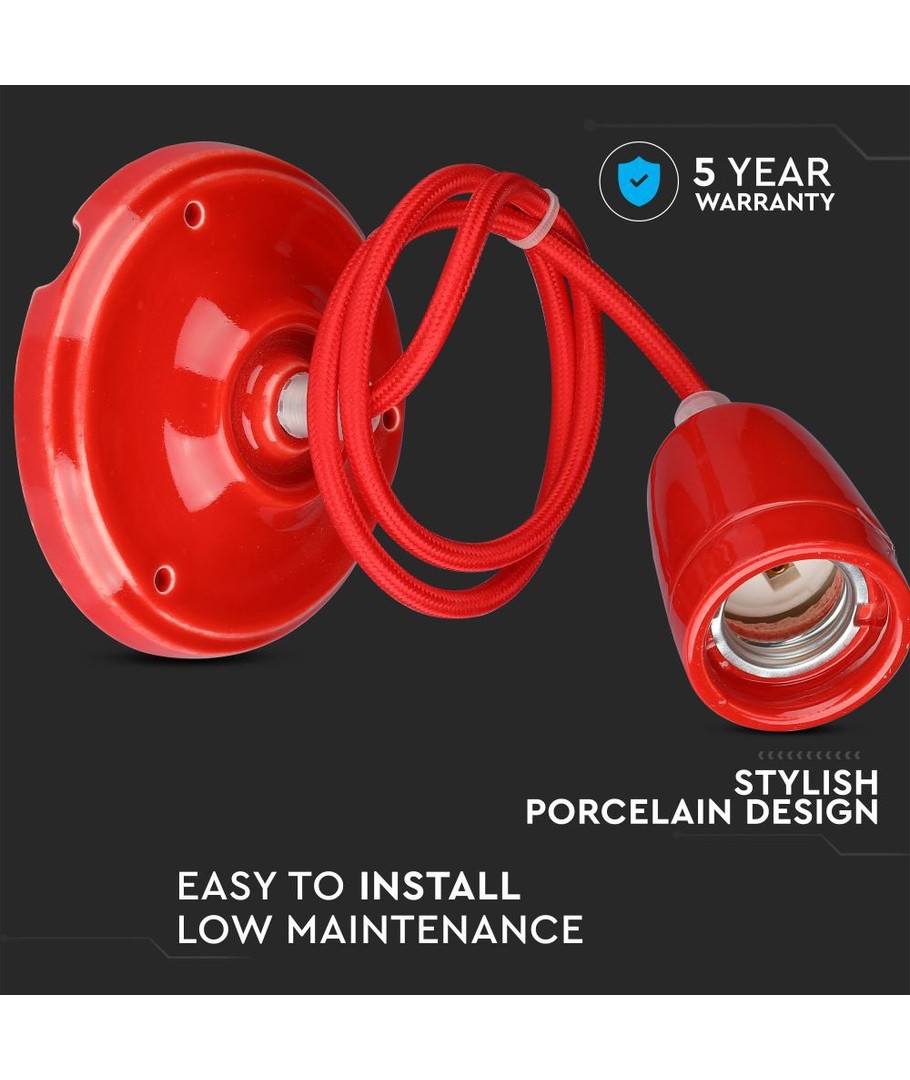 Högfrekvent porslinslampa E27 sockel - röd V-TAC Expandera