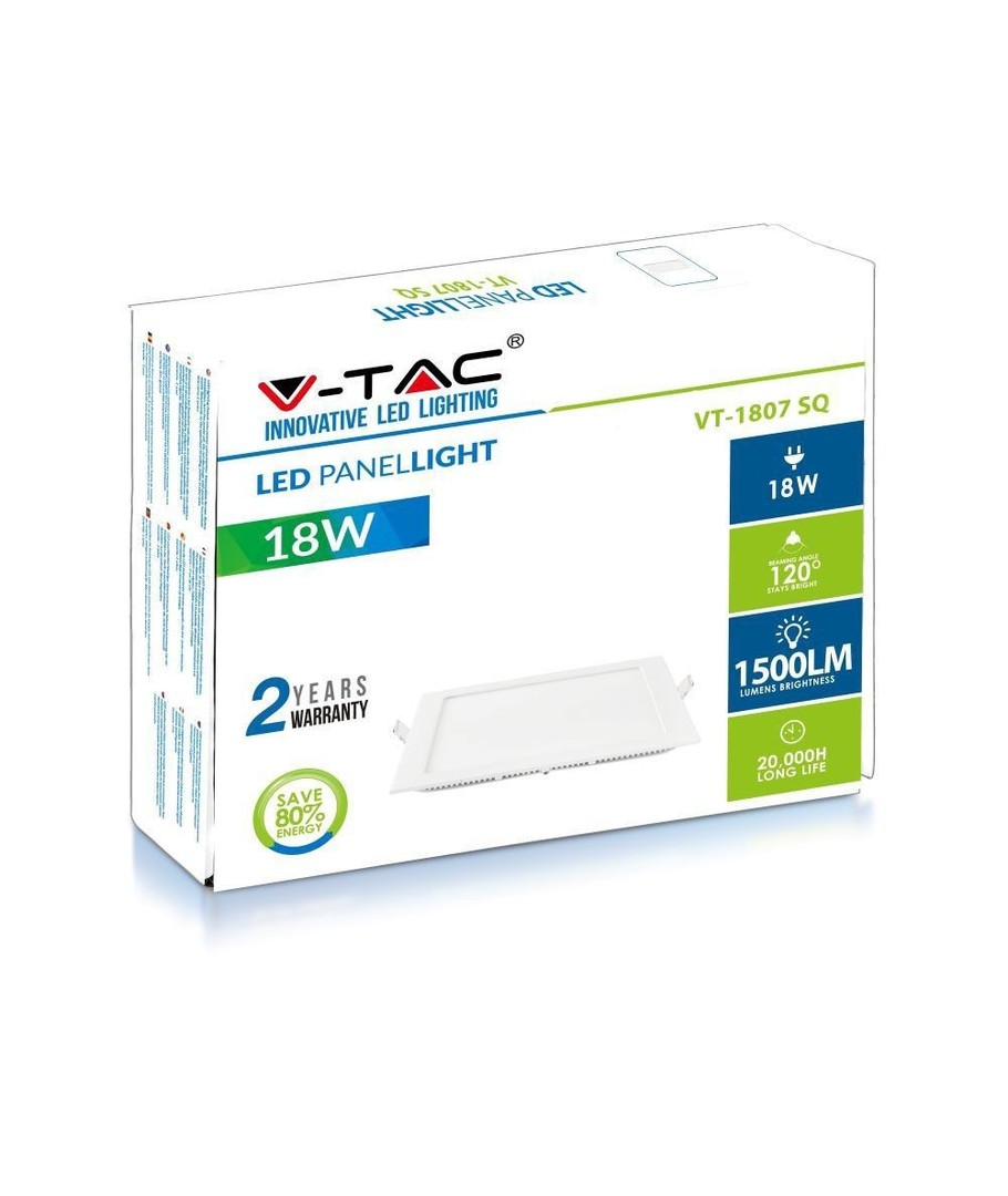 18W 22,5x22,5cm LED infällnadspanel - Hål: 20,5 x 20,5 cm, Mått: 22,5 x 22,5 cm V-TAC Expandera