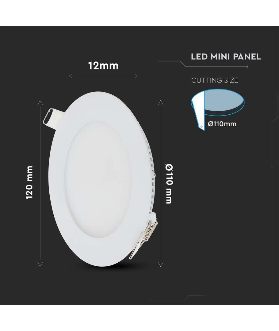 Upplev en optimerad belysningslösning med denna energisnåla LED Premium Panel, designad för både hem och arbetsplatser. Dess eleganta runda form och kompakta dimensioner på 120 x 12 mm gör den idealisk för olika miljöer, och den enkla installationen passar en hålstorlek på 110 mm.