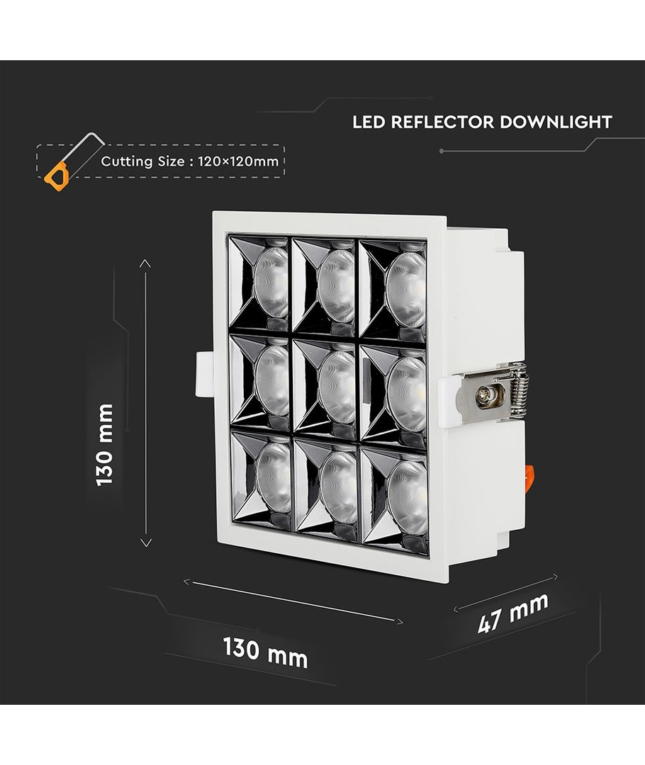 Denna imponerande 36W LED Reflektor Downlight erbjuder en ljusstark och fokuserad lösning för olika belysningsbehov. Med en ljusstyrka på 2880 lm och en ljusspridning på 38 grader, säkerställs ett kontrollerat och precist ljus som passar utmärkt för både professionella och dekorativa tillämpningar.