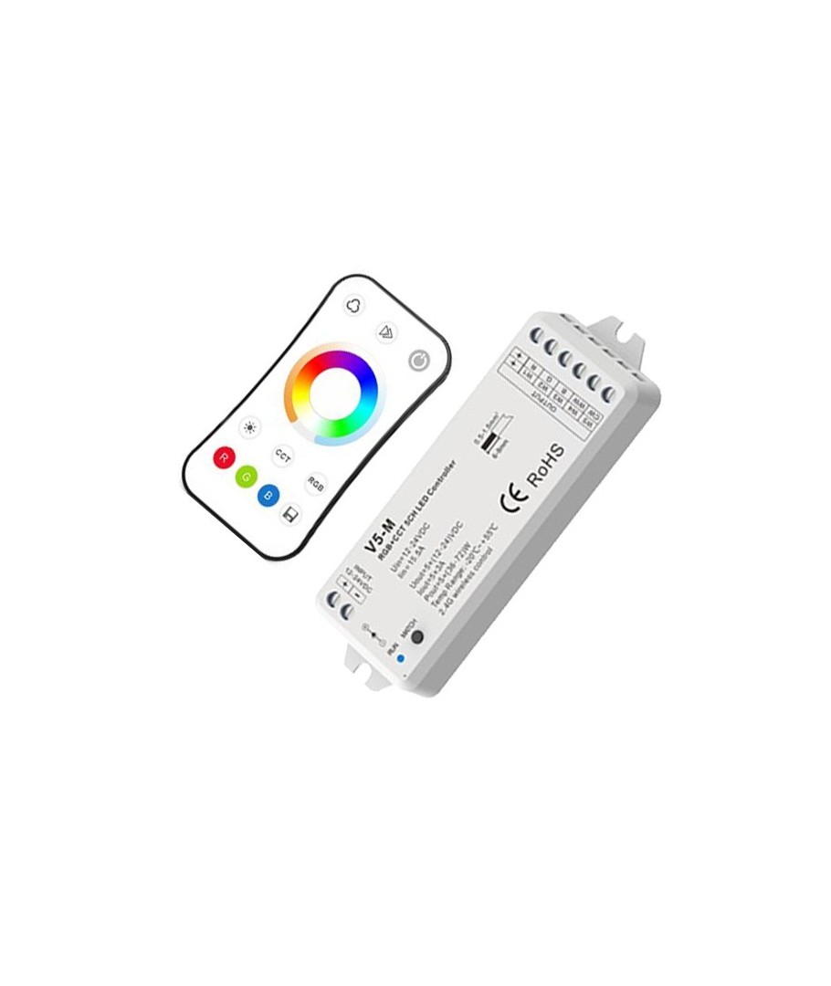 LEDLife rWave V5-M RGB+CCT-kontroller och R17 fjärrkontroll för styrning av RGB+CCT LED strips.