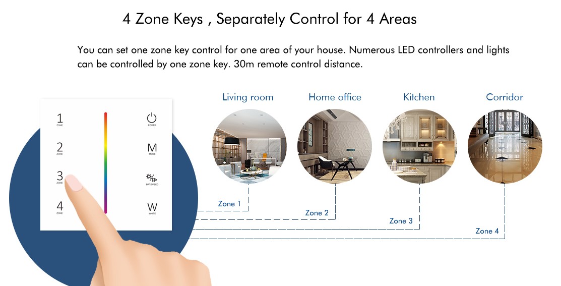 Styr 12V, 24V, 230V och dimning, CCT, RGB - allt med samma fjärrkontroll.