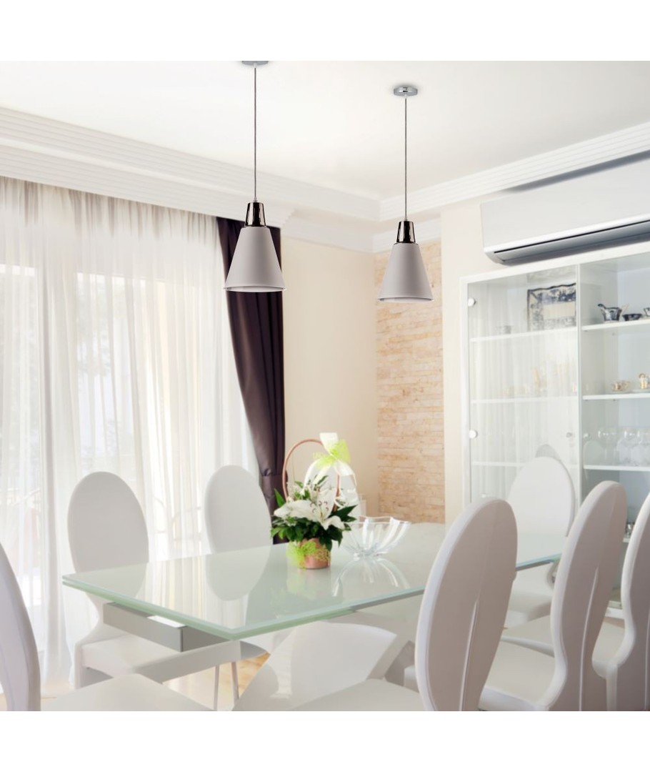 Trevligt och enkelt pendelljus i vitt med krom på toppen.