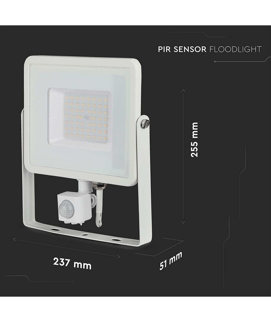 Designad i ett stilrent vitt hölje, har strålkastaren en kompakt storlek med måtten 234.3 x 57.06 x 223 mm. Den har en IP65-klassning, vilket gör den perfekt för utomhusbruk, då den står emot både vattenstänk och regn.