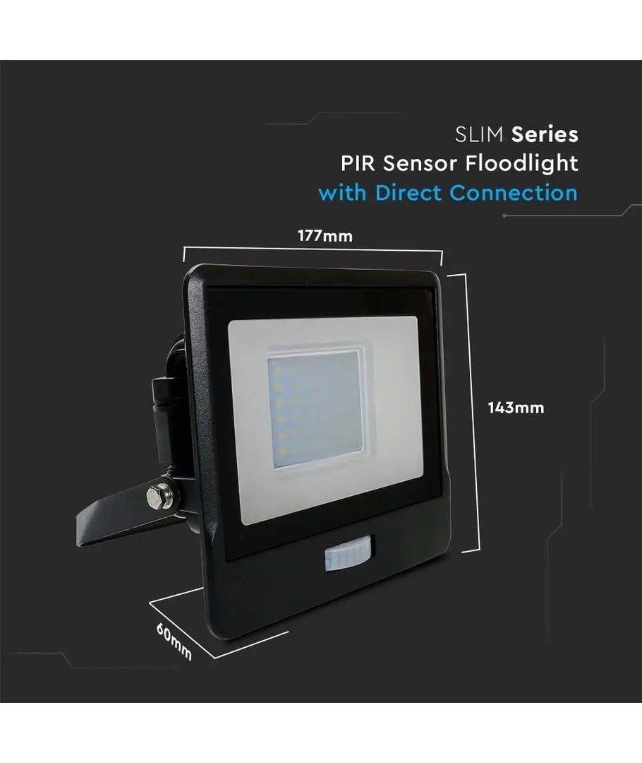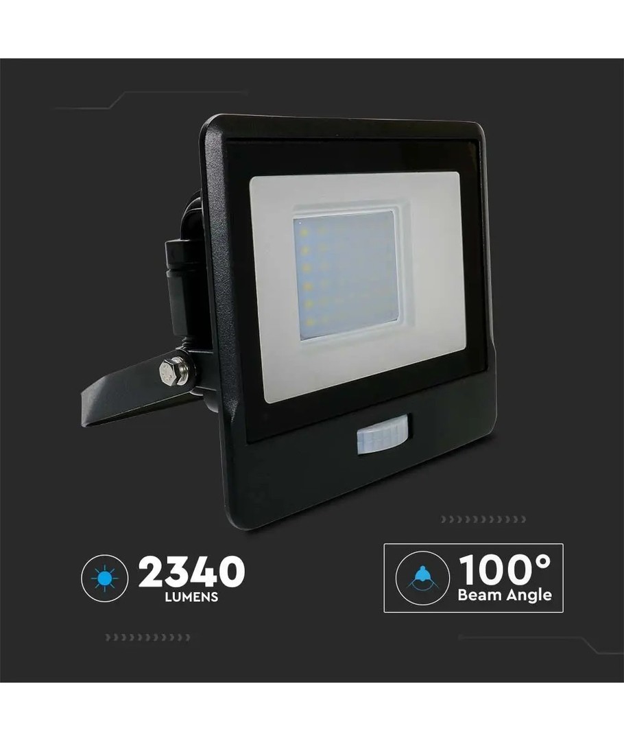 Robust byggd strålkastare med inbyggd PIR-sensor.