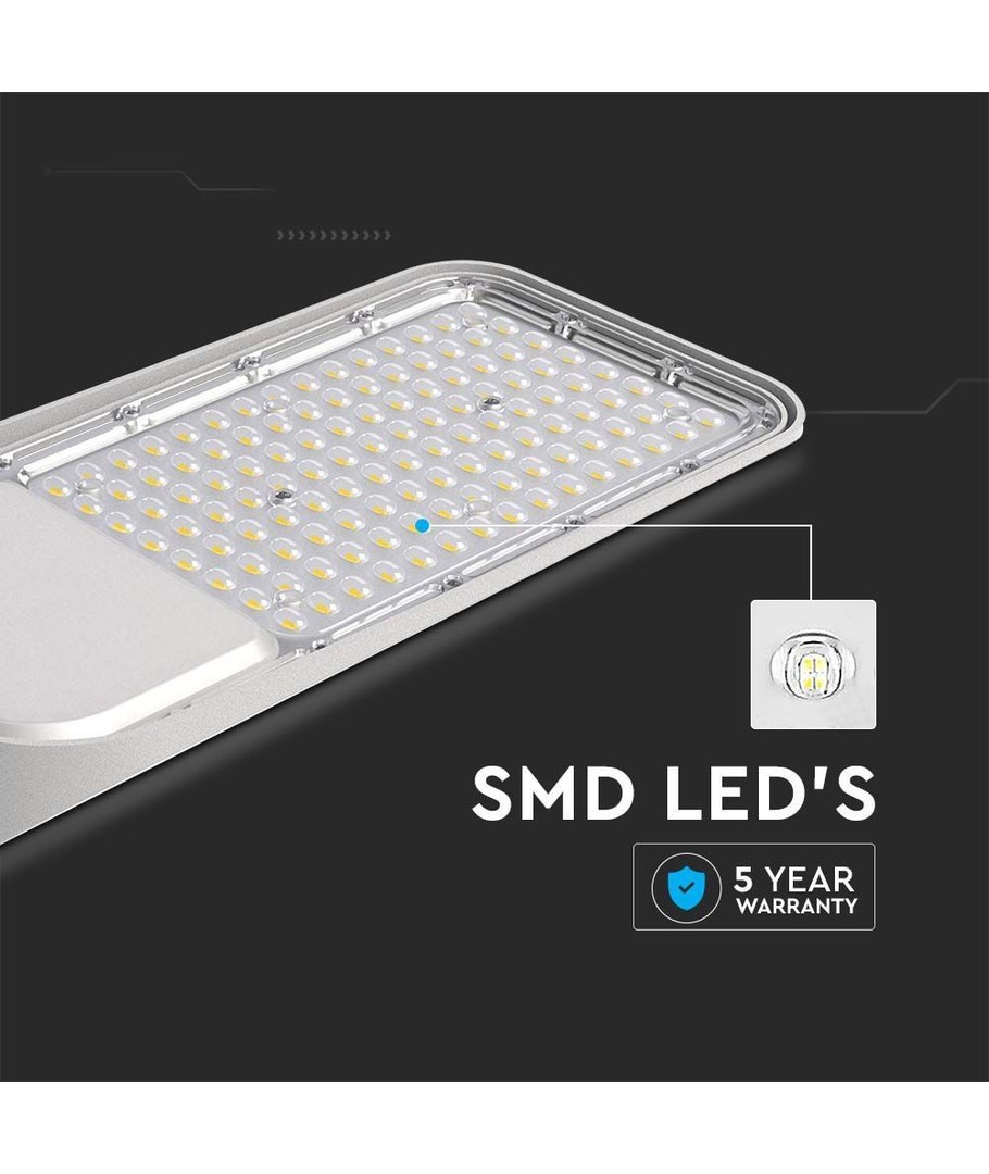 Denna LED gatuarmatur är designad för att leverera hög ljusstyrka och jämn ljusfördelning för utomhusmiljöer. Med en imponerande effekt på 50W och en ljusstyrka på 5000 lumen, ger den en ljusflöde som är tillräckligt starkt för att belysa större områden.
