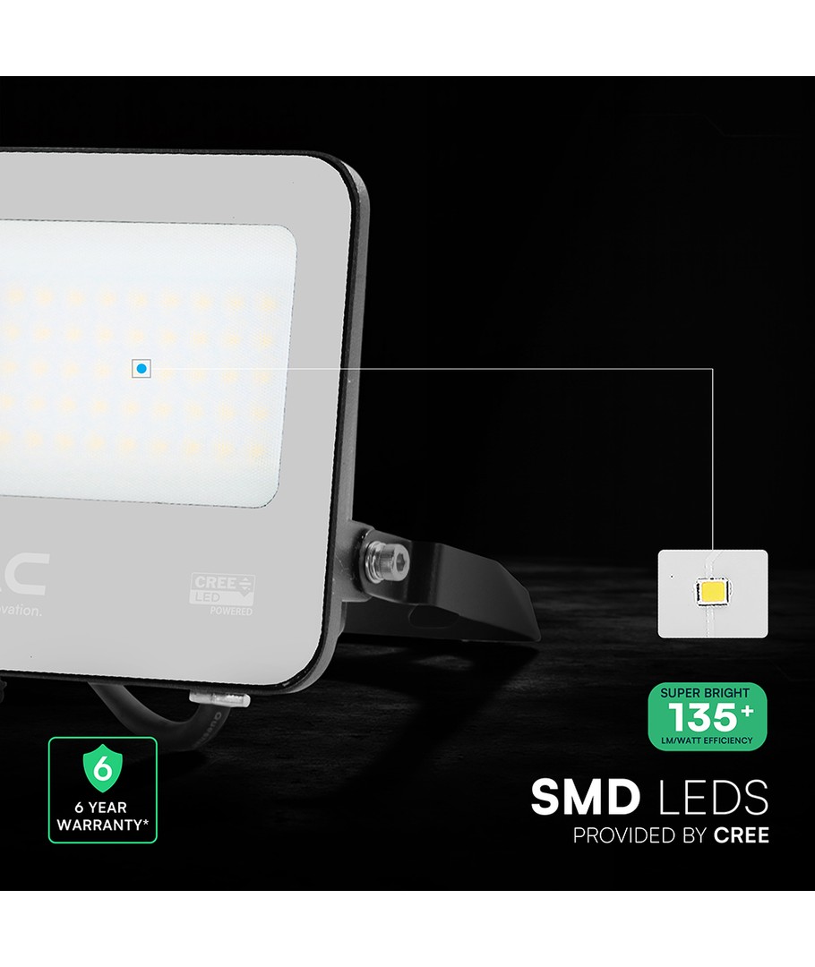 - Effektivitet: Med en effektivitet på 135lm/W erbjuder strålkastaren fantastisk ljusutbyte per energienhet.
