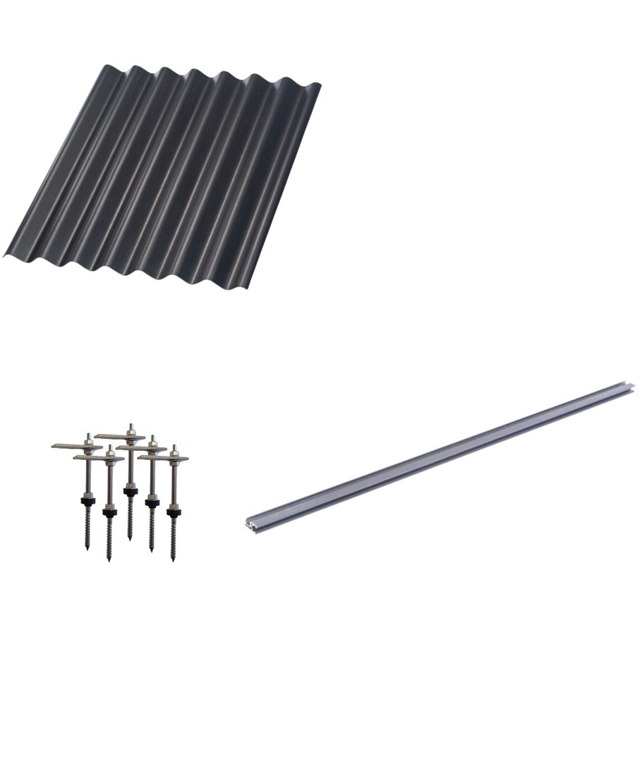 Innehåller 1 st. alu skena samt allt som behövs för att montera på eternit eller metallpannor..
