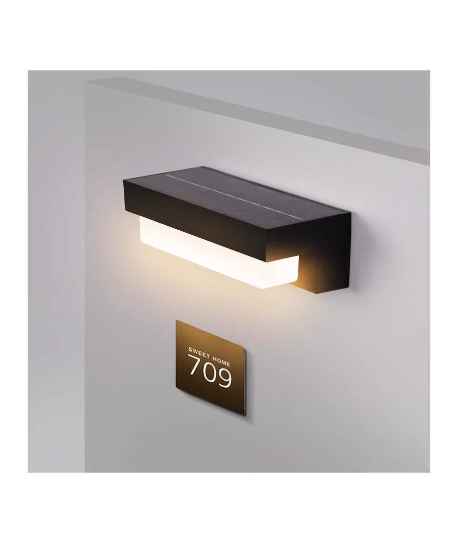 Ge ditt hem ett elegant lyft med den här innovativa och miljövänliga solcellsdrivna vägglampan, perfekt designad för modern utomhusbelysning.