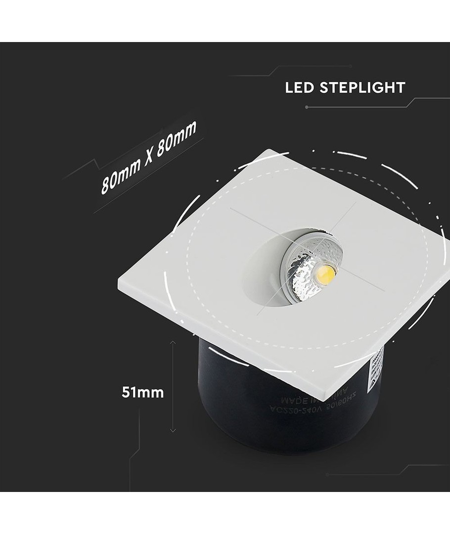 3W trappbelysning - Yttre: 8x8 cm, hål: 6,2x6,2 cm Expandera