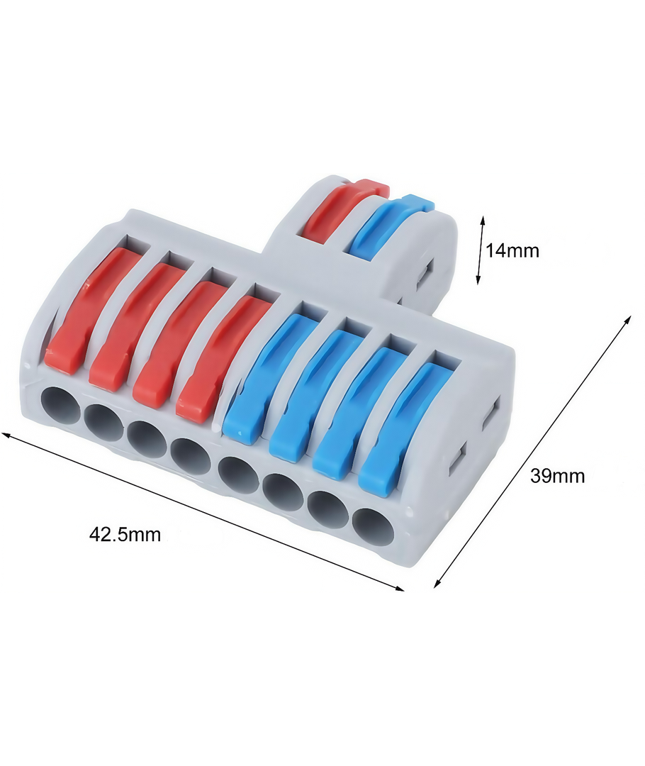 De har ett praktiskt anslutningssystem, med orange vippbygel, som gör det enkelt att få in de mjuka ledarna i hålen.