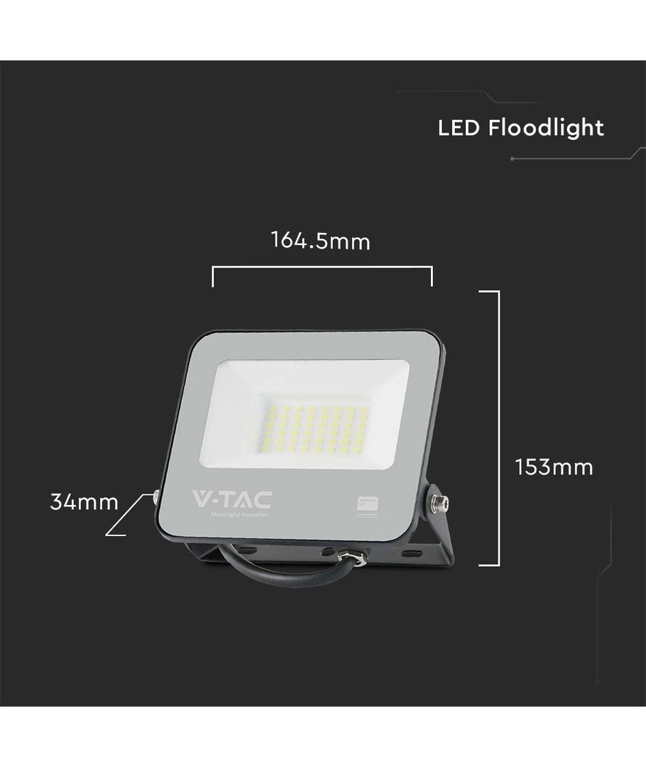 Med dess kompakta dimensioner på 153 x 165 x 34 mm, är denna strålkastare lätt att placera och diskret i designen. Dessutom är den klassificerad som IP65, vilket innebär att den är skyddad mot vattenstänk och regn, vilket gör den lämplig för alla outdoor-aktiviteter och arbetsområden.