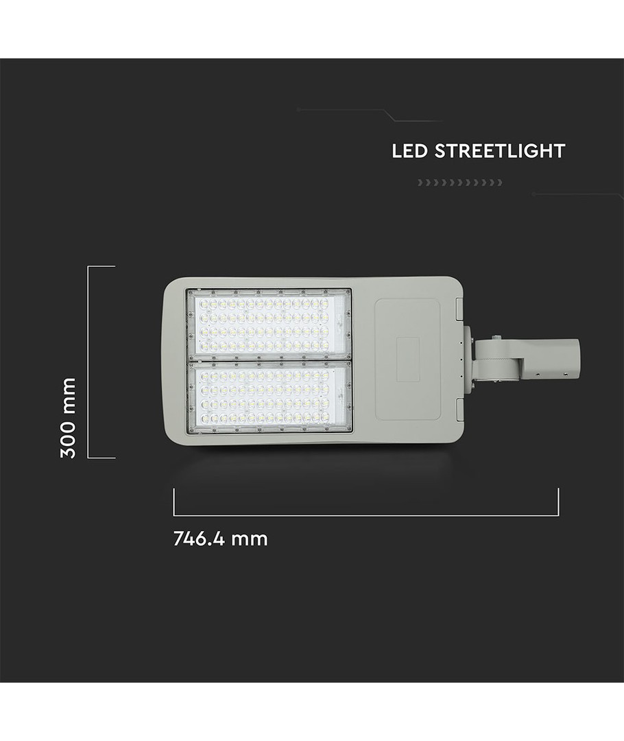 Denna kraftfulla och effektiva 150W gatuarmatur är designad för att ge optimal belysning i utemiljöer. Med ett avancerat Samsung LED-chip erbjuder armaturen en ljusstyrka på imponerande 21000 lm, med en bred spridning på 153/70 grader, vilket säkerställer en jämn och omfattande ljusdistribution.
