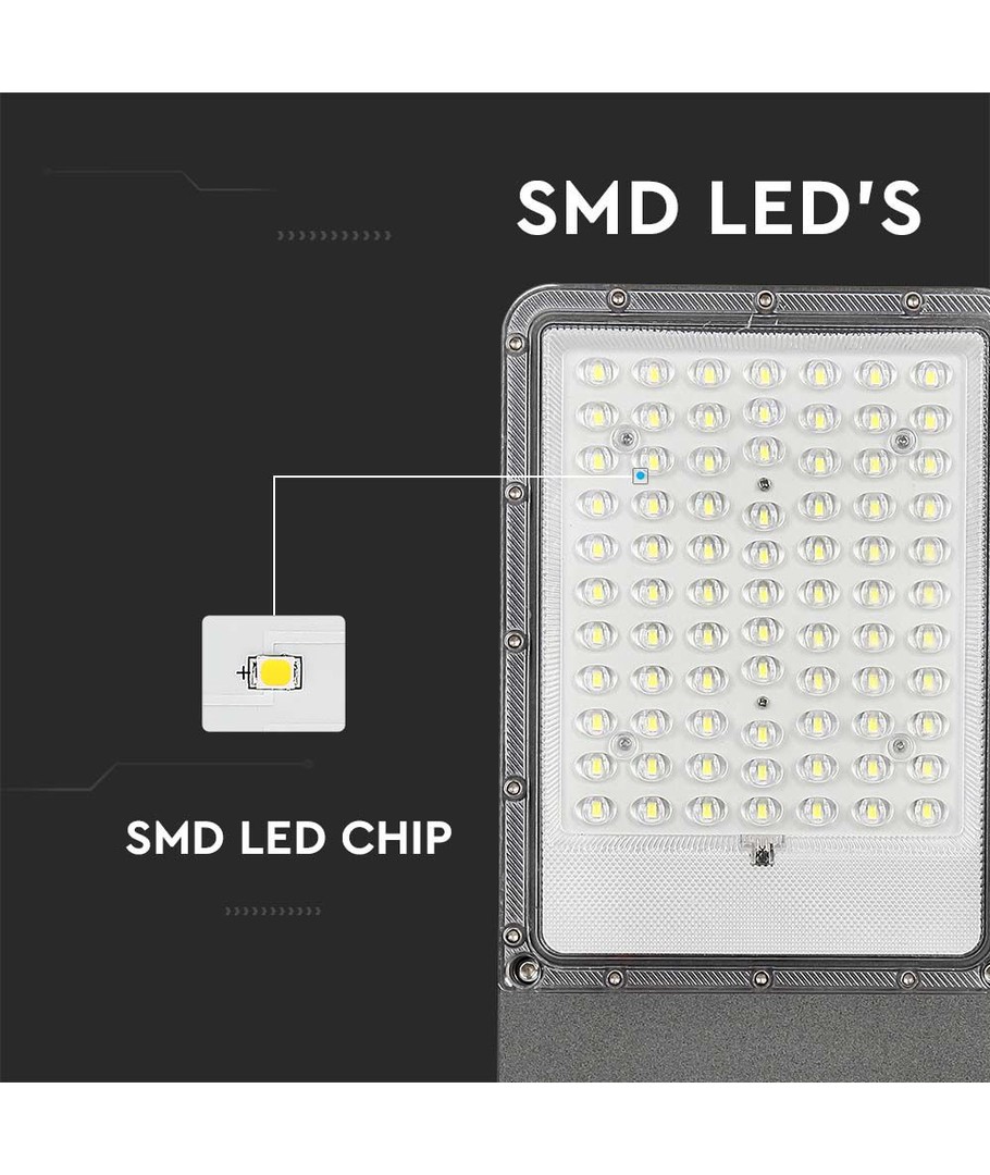 Denna LED solarlampa är designad för att ge optimal gatubelysning med en imponerande ljusstyrka på 3500 lumen. Med en spridning på 120 grader skapar lampan en jämn distribution av ljus, vilket gör att den lyser upp stora ytor med lätthet.