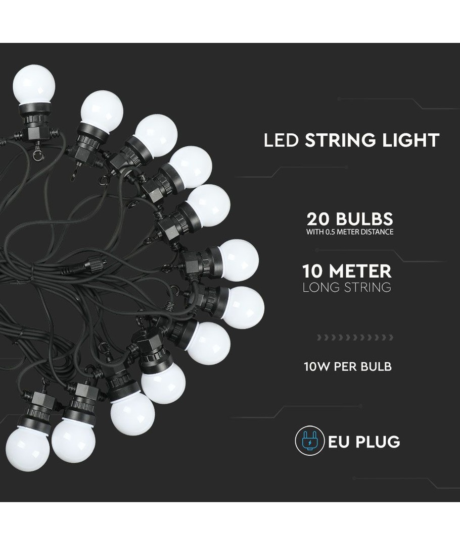 Om du söker en effektiv och stilfull lösning för belysning, är denna ljusslinga med 20 lampor den perfekta kandidaten. Med en sammanlagd längd av 10 meter är den idealisk för att dekorera både inomhus- och utomhusmiljöer. Ljusslingan är försedd med en EU-kontakt och har en säkerhetsklassning på IP44, vilket innebär att den klarar av fuktig luft och vattenstänk.
