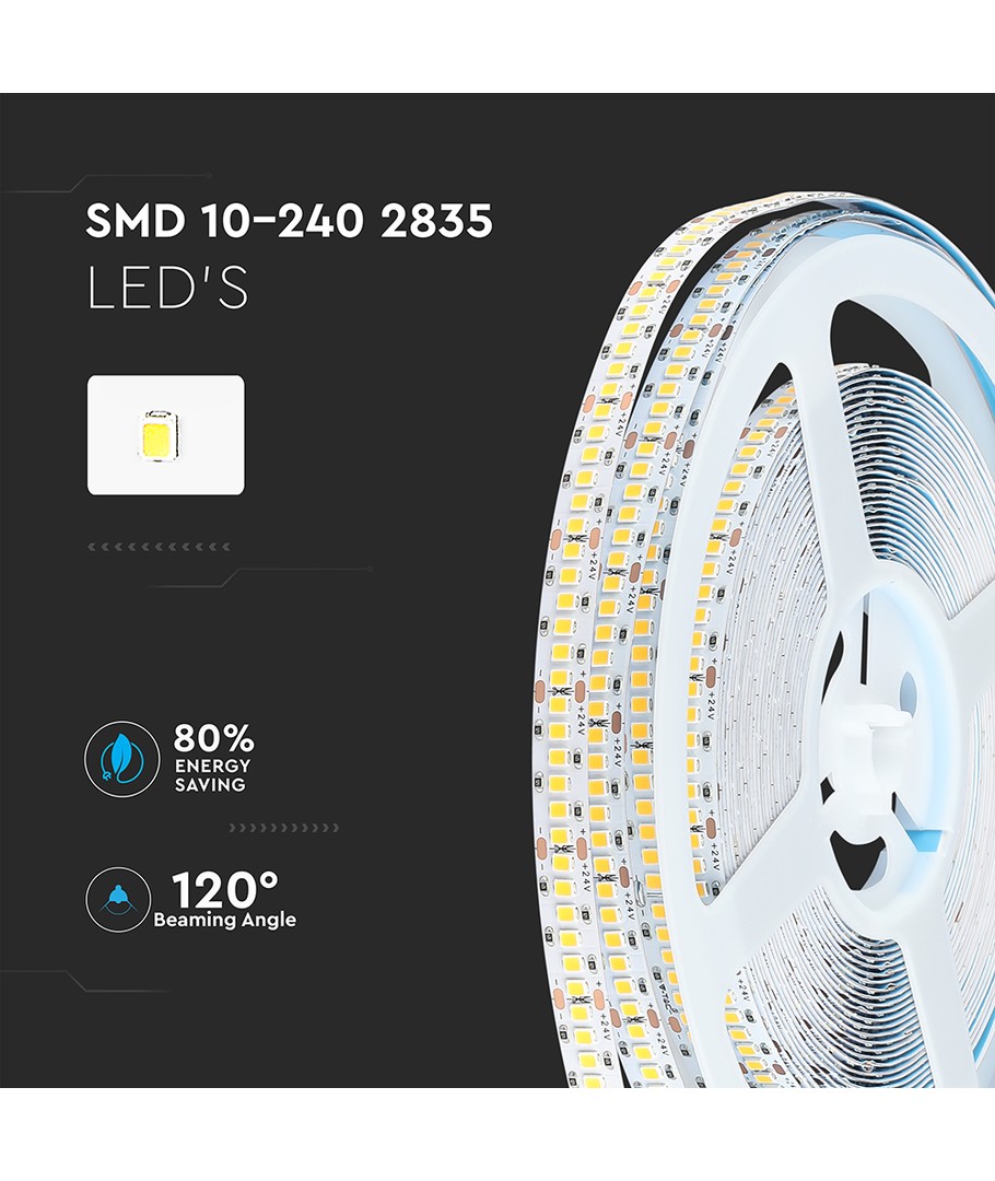 Med en hög ljuskvalitet, tack vare ett RA-värde på 80-85, erbjuder denna LED strip ett klart och naturligt ljus som genuint visar upp alla färger. Kvaliteten på ljuset är designad för att tillgodose de flesta behov, från belysning av kommersiella utrymmen till speciella dekorationer.